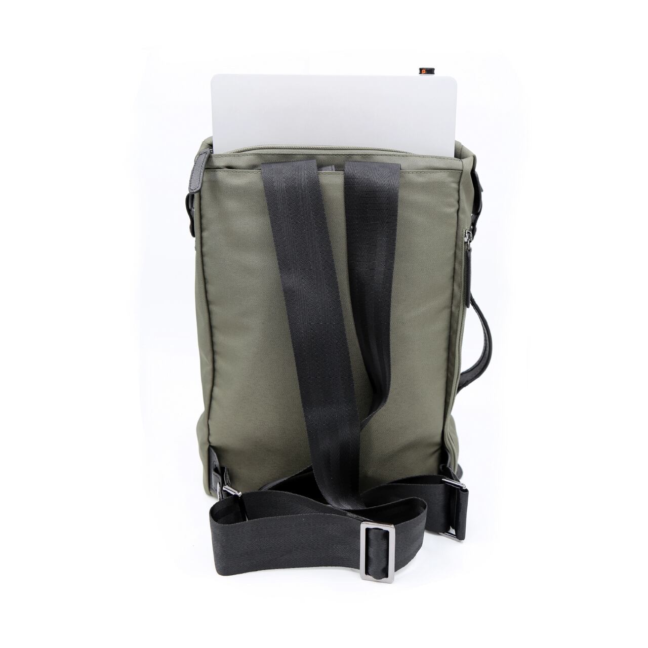 内部にはノートPCを収納できるクッション入りポケットを備え、
