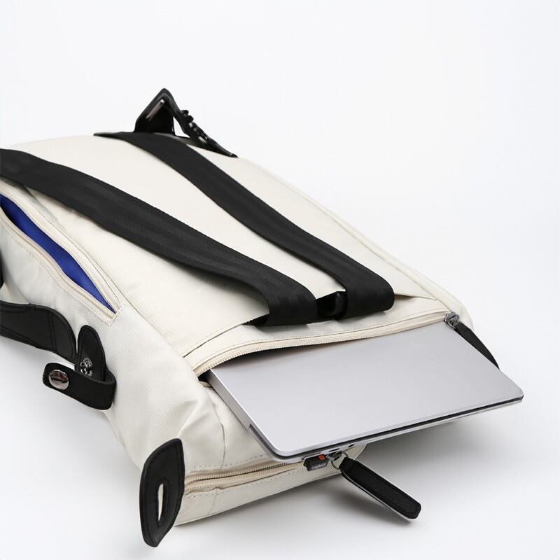 内部にはノートPCを収納できるクッション入りポケットを備え、